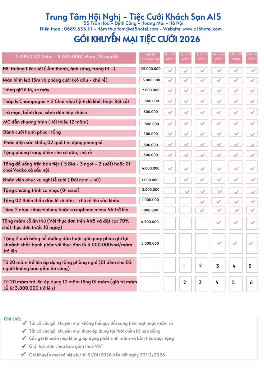 TRUNG TÂM HỘI NGHỊ TIỆC CƯỚI KHÁCH SẠN A15